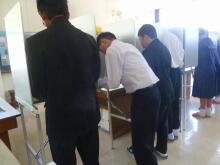 演説会終了後、1年生から順に投票所へ移動。