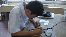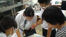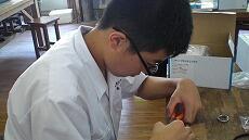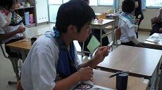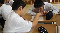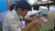 生まれて初めて扱う「はんだごて」や「電子部品」に苦労していましたが、はんだで電子部品を基板に固定することができました。取り付ける部品を間違え、固定していたはんだを加熱し、基板から外してもらっている生徒もいました。今日は練習でしたが、技術・家庭科の実習では、慎重さも求められているようです。