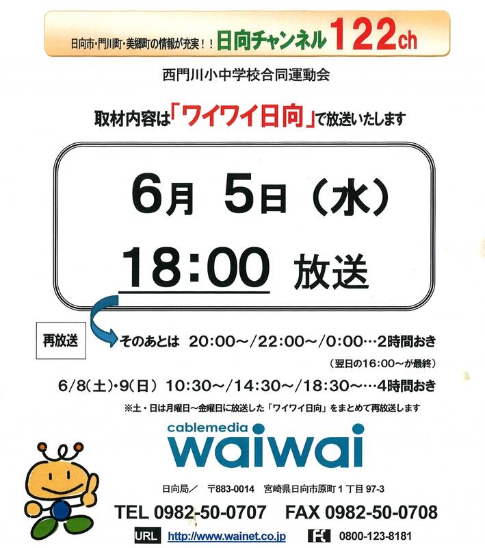 先日行いました「小中合同運動会」のようすがケーブルテレビで放送されます。放送日は6月5日(水曜日)です。