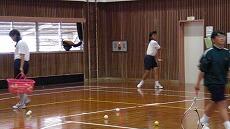 3年生にとって最後の公式戦となる「地区中学校総合体育大会」が明日から始まります。朝からの雨でテニスコートが使えなかったため、女子ソフトテニス部は体育館で、男子卓球部と一緒に最後の学校での練習をしていました。