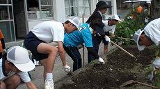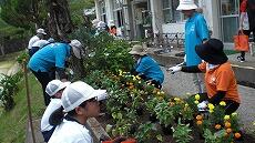 終わりの会で校長先生や民生児童委員の代表の方が「花を植えることだけではなく、これからの手入れや育てていくことの方がさらに大切」と話されていました。お忙しい中に時間を割いて学校に来て、一緒に活動していただきありがとうございました。
