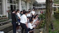 花壇学習終了後、3年生は学年で記念写真を撮っていました(3年生にとっては一つ一つの行事が”中学校最後”になるので、毎月記念写真を撮っています)。