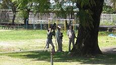 5月中旬から運動場のセンダンの木にアオバズクが来ています。今日は日本野鳥の会宮崎県支部の方々がアオバズクの観察と撮影に来られました。県内で観察ができるところは少なく、木のすぐそばから撮影ができると喜ばれていました。センダンの木に”大きな穴”が開いていて、そこでアオバズクの雌が卵を温めているであろうとのことでした。