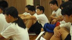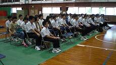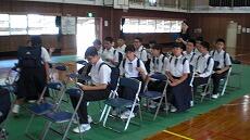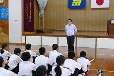 校長先生に話しでは、地区中学校総合体育大会を振り返り、入部した部活動を最後まで続けたことに自信を持ち、今後の生活に生かしてほしいということを、校長先生の体験から話されました。