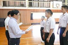 表彰は柔道競技で優秀な成績を収めた生徒に個人戦の賞状が渡されました。