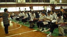 中学校では来週から水泳の授業を行います。これに併せて西門川中学校では全校生徒と職員を対象とした「心肺蘇生・AED講習会」を毎年行っています。講師は日向消防署の方です。また今回は家庭教育学級の保護者と西門川小学校の先生方も参加されました。