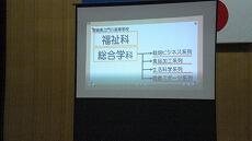 「高校説明会」では、県北の7校の先生方に来ていただき、学校や学科の特徴、卒業後の進路について説明していただきました。
