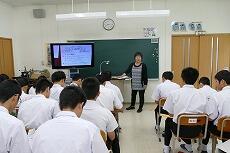 西門川中では「自律した学習ができる生徒」を育てるために、今年度「家庭学習の指導」に力を入れています。今日は国語・社会・数学・理科・英語の先生が各教科の家庭学習やテスト勉強の仕方を説明しました。