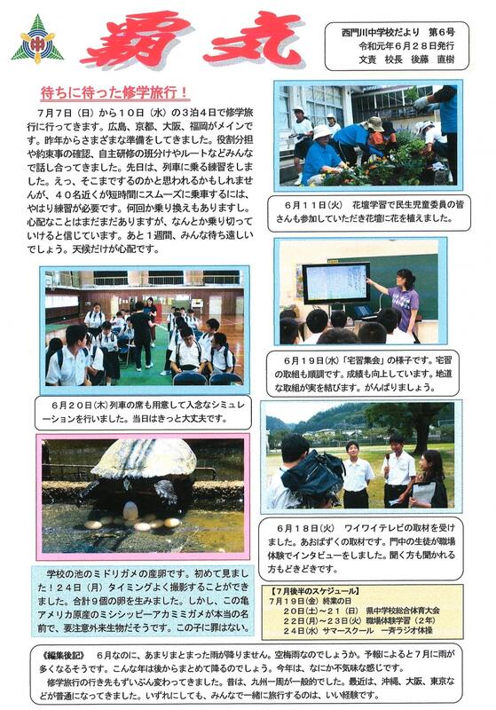 本Webページの著作権は、西門川中学校が有します。無断で、文章・画像などの複製・転載を禁じます。