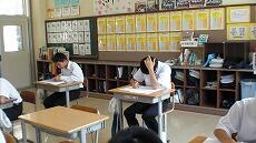 さて、今日と明日は期末テストです。両日とも3時間ずつテストを受けます。今年度は1学期の中間テストを行わなかったので、今年度初の定期テストです。普段の授業で勉強してきたことがどれだけ定着しているかを確認して、夏休みまでの残りの期間でやり直しや復習をさせていきます。