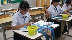 2年生の美術の授業では、自画像を「一版多色刷版画」を制作していました。版木に描いていた自画像も、それぞれ自分の特徴をよく捉えていました。完成した作品を掲示するのが楽しみです。