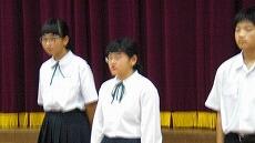 今日は朝の時間を利用して全校集会を行いました。内容は校長先生の話と先日行われた地区中学校体育大会の表彰でした。