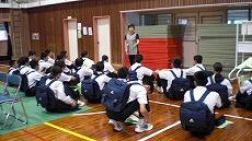 いつ、どこで災害に遭うか分かりません。そのとき、自分で状況を把握し、自分で正しく判断し、避難しなければなりません。その判断力、そして行動力を培うために西門川中では定期的な防災学習を行っています。