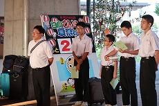 7月7日(日曜日)から3泊4日の計画で修学旅行を行います。行き先は広島、京都、大阪、北九州方面です。初日は日向市駅からJRを利用して広島、京都に向かいます。途中で特急や新幹線の乗り換えがあるので、今日はその練習をしました。修学旅行は全校生徒27名と引率職員で行きます。他の中学校と比べると人数は少ないのですが、それでも新幹線の乗り降りは心配です。