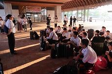 送ってきてくださった保護者に見守られながら、6時10分から結団式を行い、校長先生と実行委員長があいさつを行いました。また健康観察も行いましたが、子どもたちは全員元気でした(朝が早かったために眠い子どもはいました)。