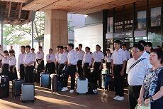おはようございます。西門川中の修学旅行は、先ほど日向市駅を出発しスタートしました。今朝は6時集合でしたが、早い生徒は5時40分頃に到着し、10分前の5時50分にはほとんどの生徒が集合しました。