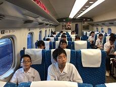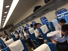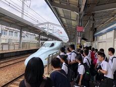 広島での平和学習を終えた修学旅行団は、荷物を抱えて新幹線に乗り込み、現在、新幹線(のぞみ136号)で京都に向かっています。