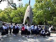 西門中修学旅行団は、特急と新幹線、電鉄を乗り継ぎ、広島平和公園に予定どおり到着しました。