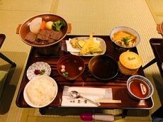 【追伸】写真は広島での集合写真と今日の夕食です。夕食は24畳の広い部屋で、子どもたちと引率の先生たち、全員で一緒に食べました。