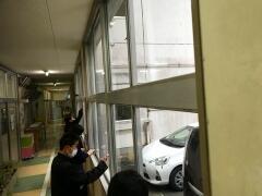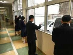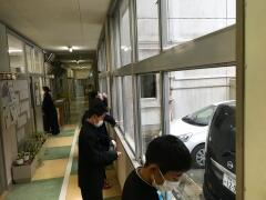 朝のボランティア。この時期は、窓ガラス拭きを全員で行っています。寒さに負けず子どもたちも頑張っています。