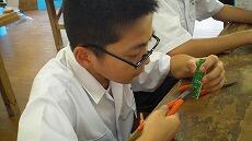 生まれて初めて扱う「はんだごて」や「電子部品」に苦労していましたが、はんだで電子部品を基板に固定することができました。取り付ける部品を間違え、固定していたはんだを加熱し、基板から外してもらっている生徒もいました。今日は練習でしたが、技術・家庭科の実習では、慎重さも求められているようです。