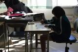 昼休み生徒たちは、「勉強をいている」「先生や小学生とサッカーをしている」「読書をしている」「委員会活動を行っている」「立志式に向けて木琴の練習をしている」「先生とテニスをしている」など、様々な過ごし方をしています。