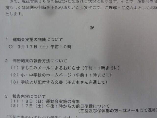 なお、以上のことにつきまして、本日「台風16号接近に伴う対応について」の