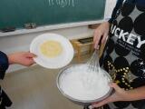 2月6日朝、また一段と冷え込みました。我が校の調理室の温度は6度でしたが、鍋にお湯を沸かして暖をとりながら調理実習をしました。あったかいシチューで、できあがりは最高で「これなら家で作れるね。」の声が聞かれました。肉のうまみや栄養分の流出を防ぐ手立て、肉を長く煮ると柔らかくなる等を体験し感じ取ることが出来ました。煮込む間、おやつも作って食べました。