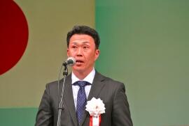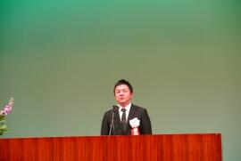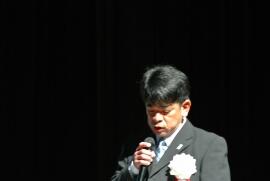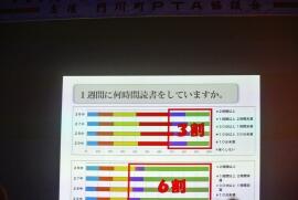 開会式の後、「かどがわ4か条」の取組状況についての報告、門川中PTAの実践報告、また、長年にわたって町Pに貢献されてきた門川中学校の 横山幸三さんへの特別功労賞表彰。