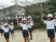 今日は3校時に、小学生も一緒に、行進と退場の練習を中心に、ラジオ体操の体形確認まで行いました。
