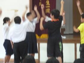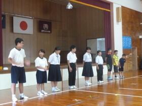 今朝は、9月18日(日)に予定しています、西門川小・中学校、児童館合同運動会の結団式を行いました。