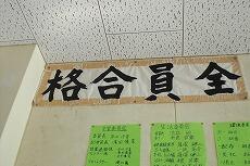 今日と明日は3年生が実力テストを受けています。高校入試に向けた最後の実力テストです。3年生の教室には勉強や入試に向けた本が置いてあります。また、教室後方には、「全員合格」と書いた模造紙も掲示してあります。この模造紙は10年近く掲示してある代々3年生を見守ってきてくれたものです。