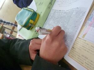 授業者は、社会科担当の 野邉尚久先生。単元は「地形図の読み取りと使い方」。