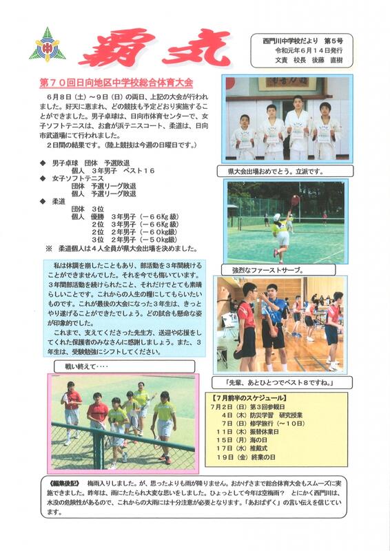 本Webページの著作権は、西門川中学校が有します。無断で、文章・画像などの複製・転載を禁じます。