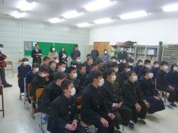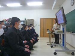 全校生徒が共通に取り組むこと(お米を洗って炊飯器にセット)や、選んで取り組む内容の説明をプレゼンを使ってお話くださいました。