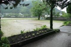 昨日の天気予報のように雨が降り、放課後はテニスコートにも水が浮き、ソフトテニス部は体育館で練習をしました。
