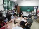 小学校の懇談会終了後に、中学校の図書室で本年度の小中合同家庭教育学級開級式