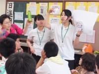 また、県立看護大の学生の方も2名来られて、おやつに含まれる砂糖の量や、おやつと虫歯の関係について教えていただきました。