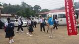 今朝は、教育委員会の方も参加され、徒歩やバスで登校してくる児童生徒一人一人に