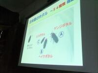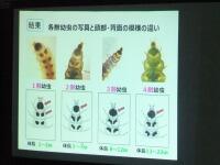 3種類のホタル(ゲンジボタル、ヘイケボタル、ヒメボタル)の光り方、大きさの違い、雌雄の外見の違いをおしえていただき、貴重な映像・資料をたくさん見せていただきました。