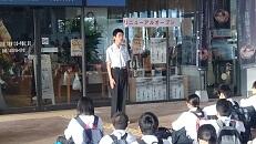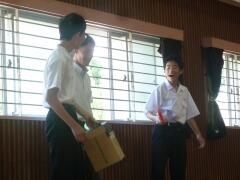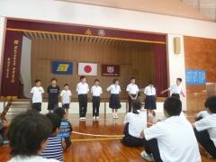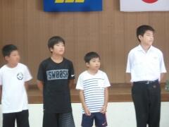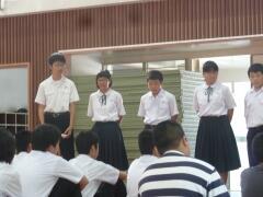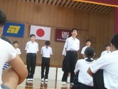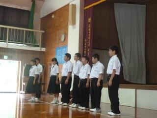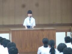 1年生の篠塚健二くん、2年生の黒木きらさん、3年生の川内田 響さん の3名が学年を代表して、1学期を振り返っての反省を述べてくれました。学習面、