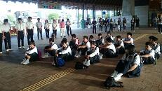 おはようございます。今日から修学旅行です。今朝は6時に日向市駅に集合し、見送りに来てていただいた保護者や先生方に見守られながら出発式を行いました。その後、6時45分発の特急にちりん2号に乗り込み、全員元気に出発しました。