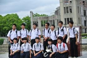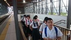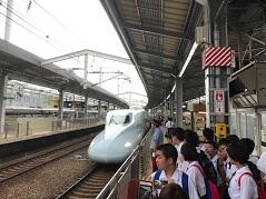 修学旅行生は、広島平和公園で講話を聞いた後資料館を見学し、電車(広島電鉄)を利用して、広島駅に向かっています。この後新幹線(のぞみ136号)に乗り、京都駅に向かいます。