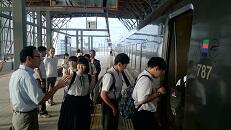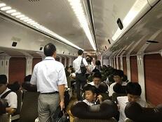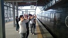 このあと、大分駅でソニック18号に乗り換え、小倉駅を目指します。小倉駅では新幹線(さくら546号)に乗り、広島に向かいます。今日は電車乗り降りが多いので、学校では事前に電車の乗り降りの練習もしていました。