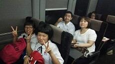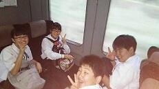 修学旅行の引率職員から写真が届きました。みんな楽しそうです。この写真は最初に乗り込んだ「にちりん」です。この時間は「ソニック」乗り換えて、小倉駅に向かっているはずです。