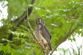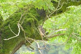 先日お知らしました「アオバズク」、今日は4羽とまっていました。1羽の親鳥とそこから少し離れたところに1羽の親鳥と2羽のひなが一緒にとまっていました。「西門中にアオバズクが来ると災害がない」と3月まで勤務されていた教頭先生がおっしゃていたそうです。本校は昨年9月に床上浸水(70cm)を経験しており、昨年はアオバズクは来ていなかったそうです。今年は水害がないことを祈っています。