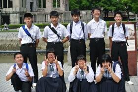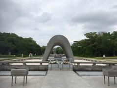 修学旅行生は広島に到着しました。写真を見ると、小雨が降っているようです。