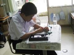 「美しく、そして速く書くくためには筆順が大切」と授業の中で指導されていました。これからの作品が楽しみです。