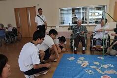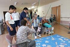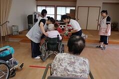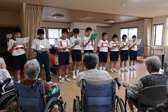 西門川中学校の校区には、グループホーム「神舞(かんまい)の里」があります。今日は3年生(9名)がボランティア学習として施設を訪問し、入所されている方々と一緒にゲームをしたり、歌を披露したりしました。また入所されている方が手際よくゲームをされていて、予定よりも早く終わったので、一人一人が、自分のこれからの目標を発表しました。最後は子どもたちが入所されている方を居室まで送りました。子どもたちの朗らかで優しい表情が印象的で、心あたたまる一時でした。
