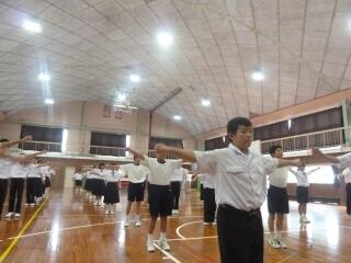 これに向けて、先週から放課後の時間を使って、練習を行っています。特に「第2体操」が難しいということで、先生方を手本に練習を続けています。